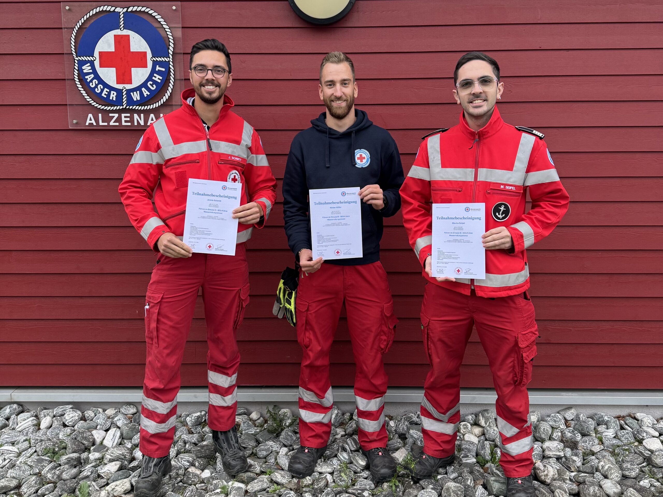 Unsere Ortsgruppe freut sich über drei neue SEG-Führer. Vom 17. bis 19. Oktober 2025 besuchten drei unserer Mitglieder den Lehrgang Führen im Einsatz III – SEG-Führer der Wasserwacht Unterfranken. Dieser befähigt sie in Zukunft unsere Schnell-Einsatz-Gruppe Wasserrettung im Einsatz zu führen. Wir bedanken uns für dieses Engagement und wünschen viel Erfolg bei den neuen Tätigkeiten.